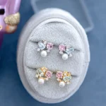 Introducing the **Sugar Plum Fairy Studs**—a whimsical and enchanting accessory inspired by the magical charm of a fairy tale. These studs feature a delightful combination of blue topaz, light pink zircon, and natural pearl, creating a sparkling and ethereal look.